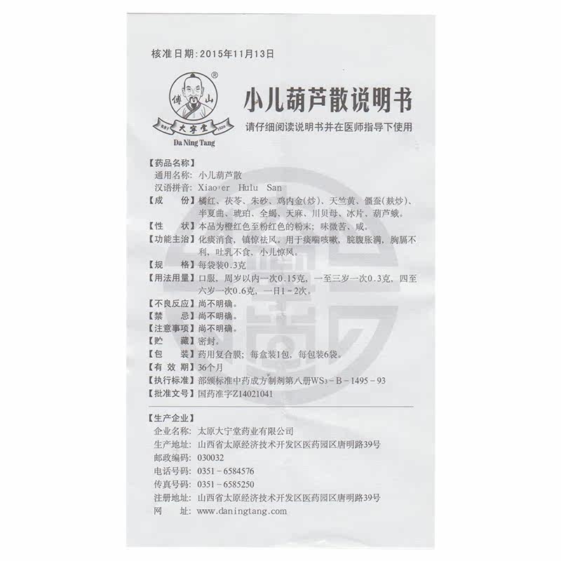 傅山 Педиатрическая тыква рассеяние 0,3 г*6 мешков/коробки