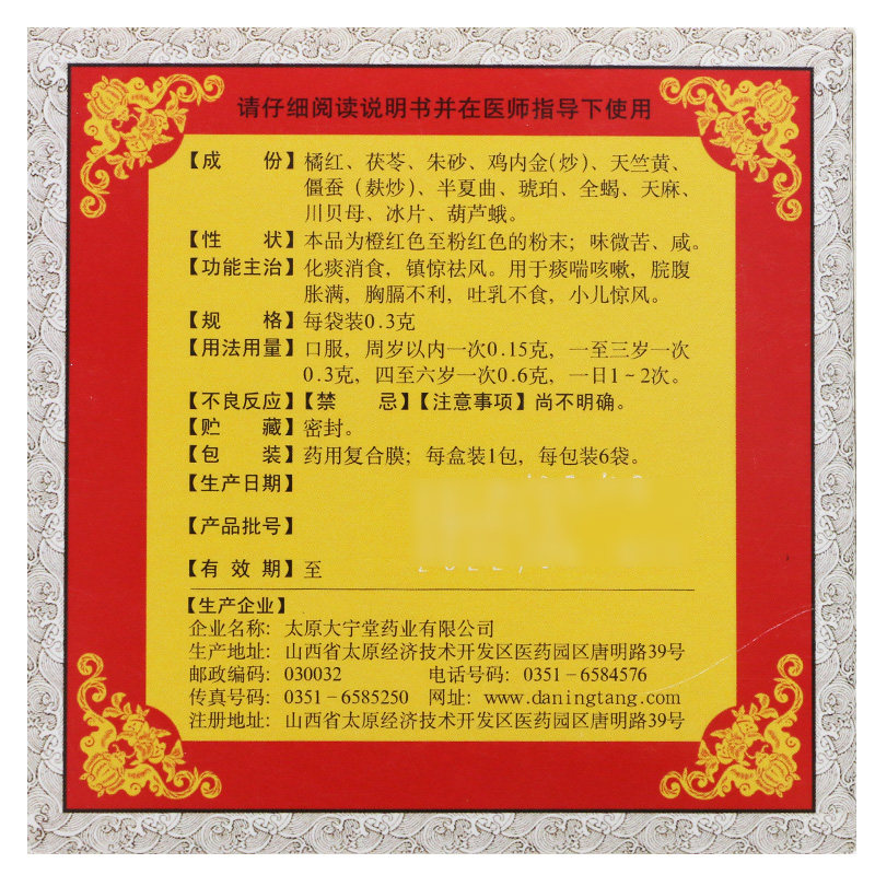 傅山 Педиатрическая тыква рассеяла 0,3 г*6 мешков/коробки с мокротой и устранение городского шока, эксплуатации, мокроты, кашля астмы