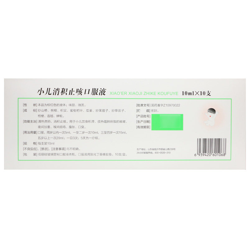 鲁南 Педиатрическое накопление кашля пероральной жидкости 10 мл*10 поддержка/коробка диета застой при ночном кашле и запах живота
