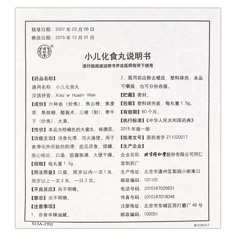同仁堂 Педиатрические таблетки для пищи 1,5 г*10 таблетки/коробка, чтобы устранить стагнацию и стагнацию.