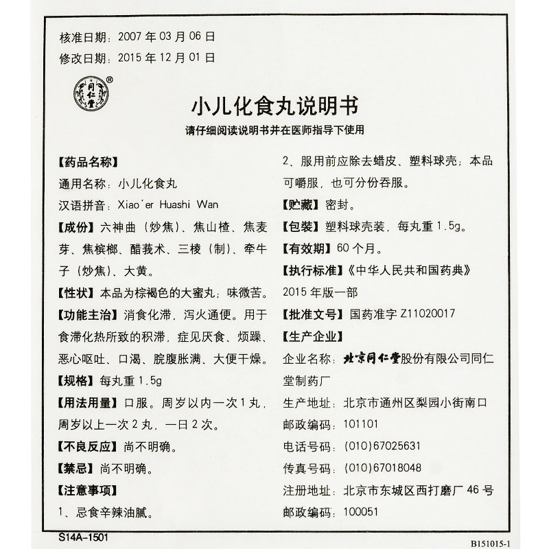 同仁堂 Педиатрические таблетки для пищи 1,5 г*10 таблетки/расщепление ящиков Плохая анорексия, тошнота, рвота, рвота, огонь и детские лекарства