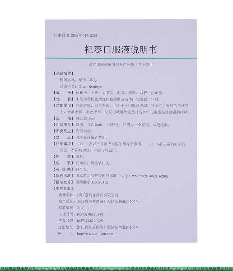 泰利森 Qi ZAO Пероральная жидкость 10 мл*10 поддержки/коробка потери аппетита детского аппетита и потери памяти