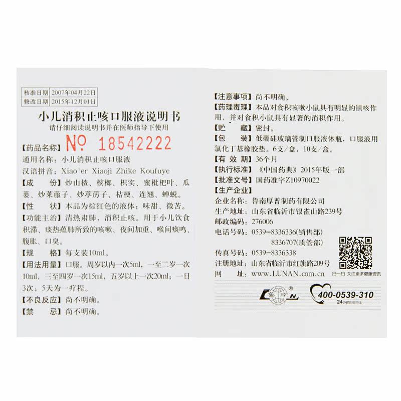 鲁南 Педиатрическое накопление кашля пероральной жидкости 10 мл*10 опор/ящик прозрачного тепла, легких, устранение кашля, используемое для детского пищевого застава, мокрота, легких, легких, ухудшает мокроту горла, вздутие живота и плохое дыхание.