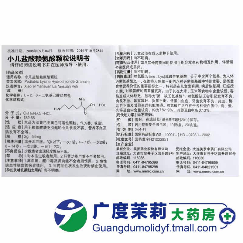 美罗 Детские гидрохлоридные гранулы 2G: 54 мг*10 мешков/недоедание коробки.