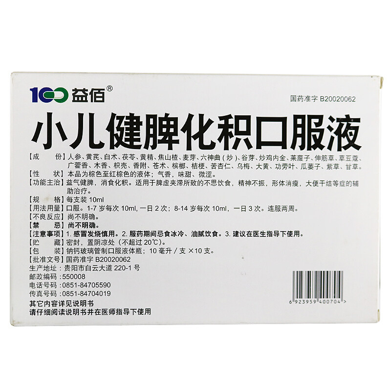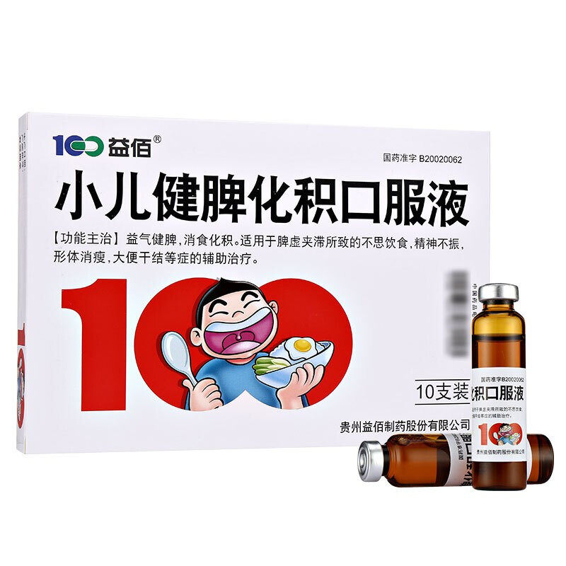 益佰 Пероральная жидкость для детей с укреплением селезенки и пищеварением, 10 мл*10 кусочков коробки с помощью цирки и пищеварения Qi, подходящих для потери диета, вызванного дефицитом селезенки и застоя, вспомогательное лечение для таких симптомов, как потеря ума и потеря потери веса тела. и сухой стул и другие симптомы