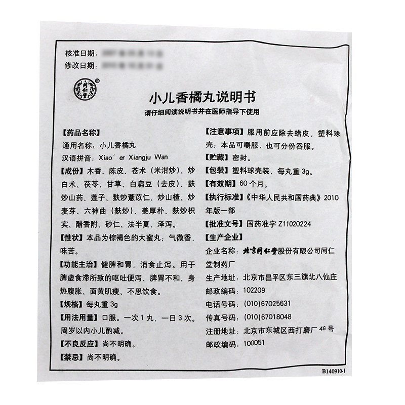 同仁堂 Педиатрическая Сян Апельсиновая таблетки 3G*10 таблетки/ящик для ужина Dine Destelser Используется для рвоты и диареи, селезенки и желудка разногласия.