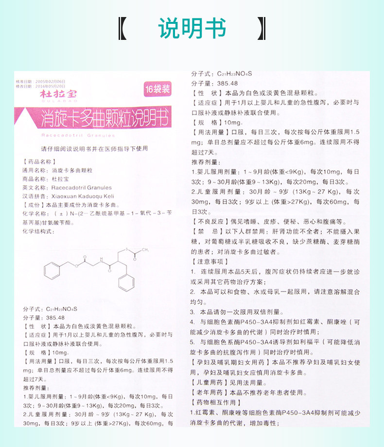 好好 Durabao Capital Card Duquer Granules 10 мг*16 мешков/коробка с острой диареей для детей и детей более месяца
