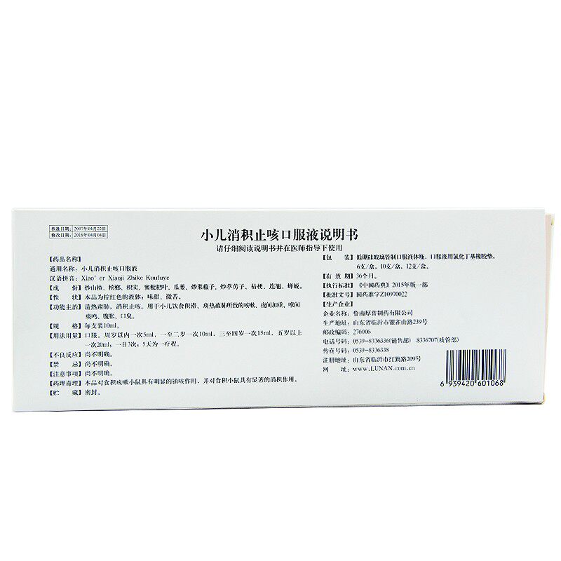 鲁南 Педиатрическое накопление кашля пероральной жидкости 10 мл*10 ветвей 1 коробки