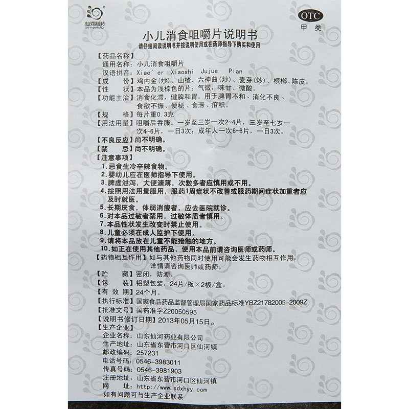 仙河 Детские жевательные таблетки Xiaoshi Xianhe Детские жевательные таблетки Xiaoshi 0,3 г * 48 шт./кор.