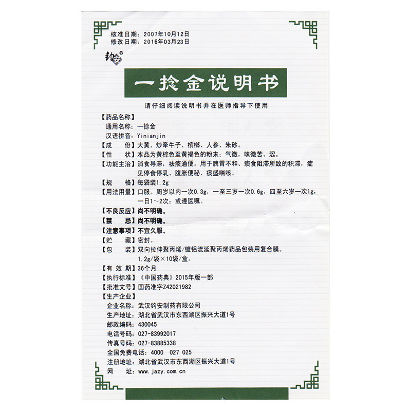 钧安 Один скручивающий золото 1,2 г*10 мешков/коробки, чтобы устранить стагнацию и изгнать мокроту.
