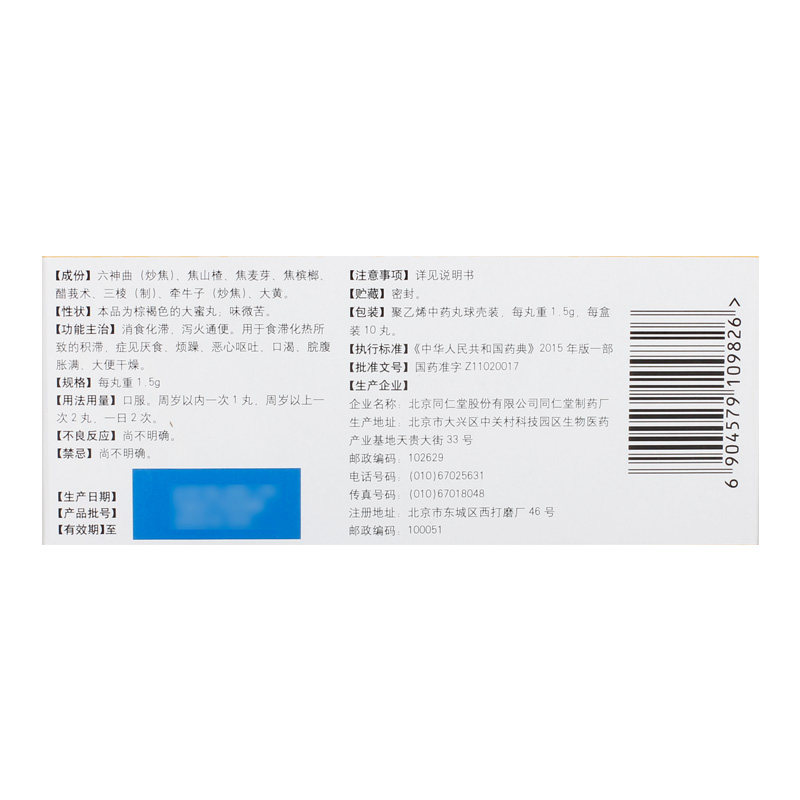 同仁堂 Педиатрическая пищевая таблетка 1,5 г*10 таблетки/коробка стагнация.Смотрите анорексию и раздражительность.Почувствуйте боль и рвоту.Жажда полна живота.Сухой стул