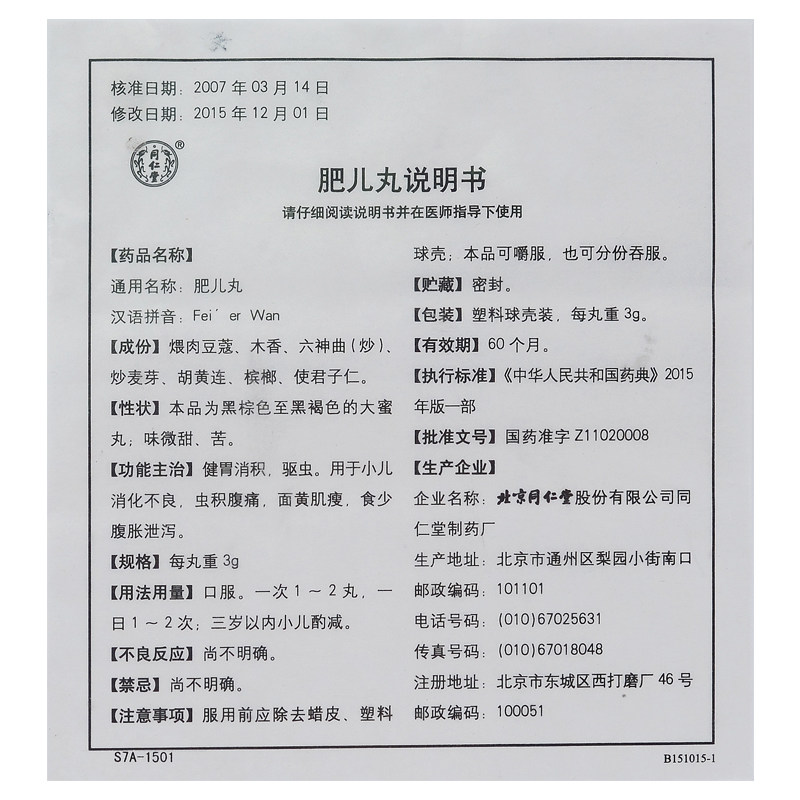 Multi -Box Discount] Tongrentang Feier Pill 3G*10 таблетки/коробка Jianxian Divide Defliade Deserate используется для детский пищеварительный негативные насекомые, боль в животе, желтые мышцы, вздутие живота, диарея, диарея