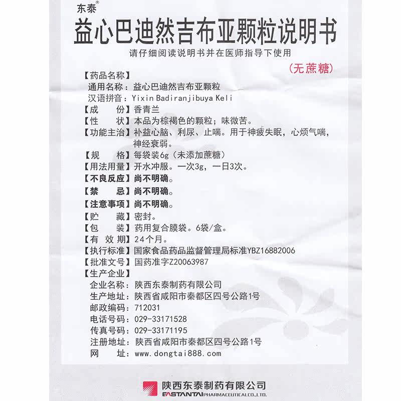 16.75/box] Dongtai Yixin Bardran Gibia Гранулы (сахароза) 6G*6 мешков/ящик тоник, сердце, мозг, диуретик, дыхание, удушающие, раздражающие, астму, нервное снижение