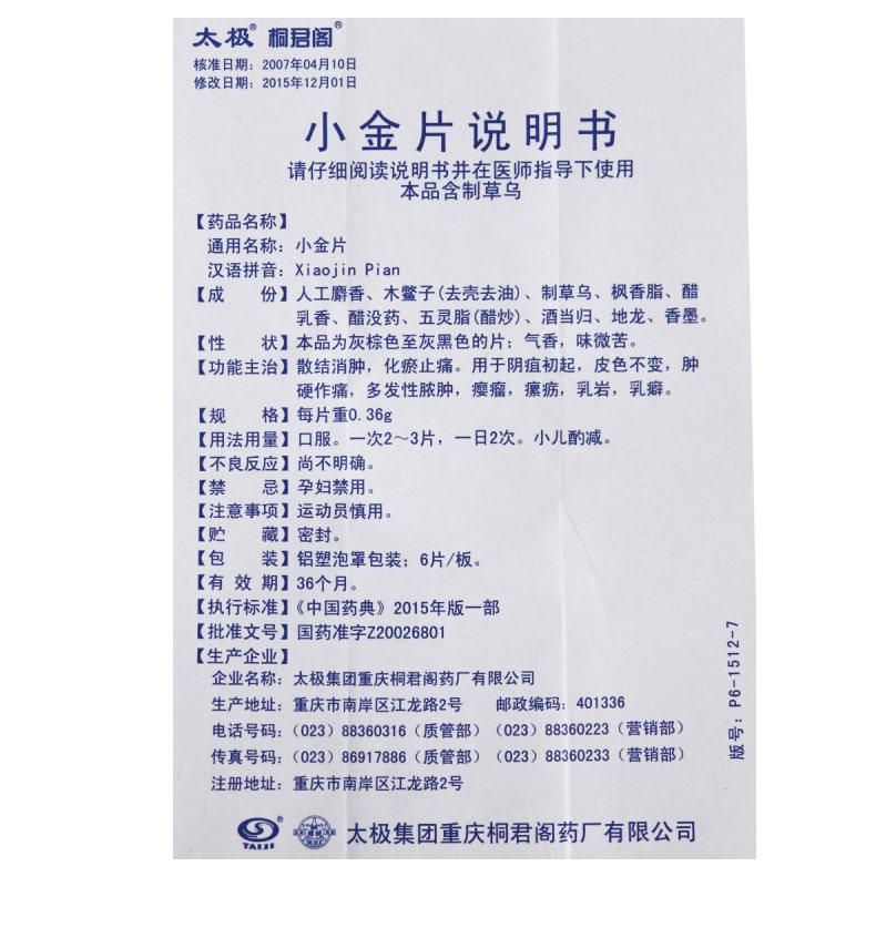 Бесплатная доставка подлинная пленка Tai Chi Small Gold 0,36G*6 штук/коробка RXZ Дисперсия, набухание, стазис, облегчение боли
