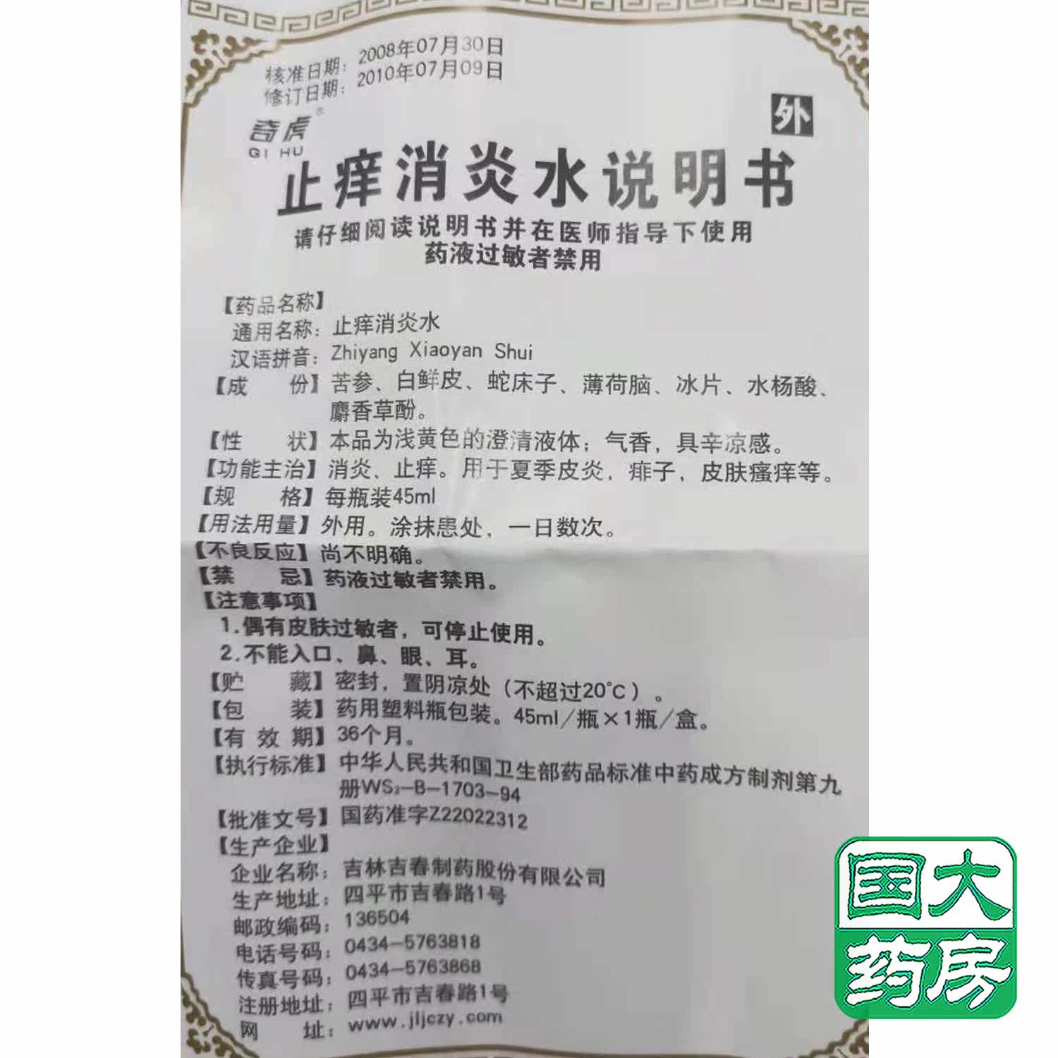 吉春 Qihoo Anti -Citching and Anti -Inflamment Water 45 мл*1 бутылка/коробка [флагманский магазин национального университета]
