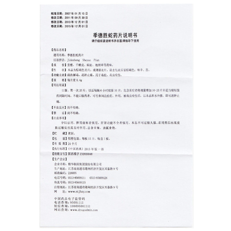 季德胜 Джидешэн -змеи таблетки 0,4 г*15 таблеток/ящик чистый тепло, детоксикация, отеки, боль и облегчение и облегчение боли, облегчение боли, облегчение боли и избавления от боли.