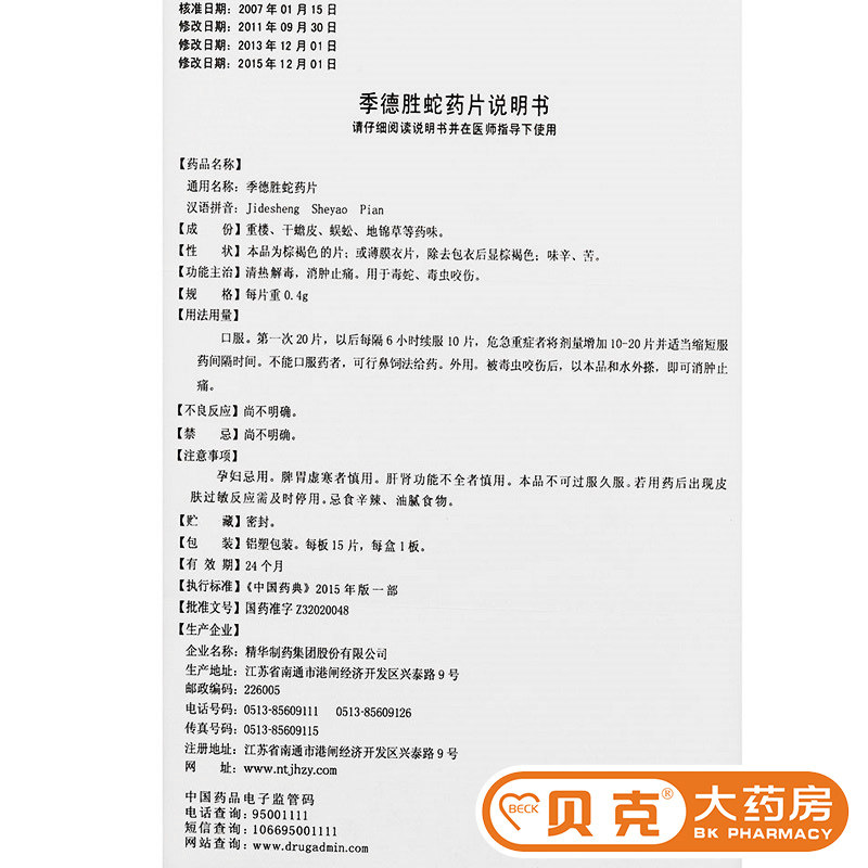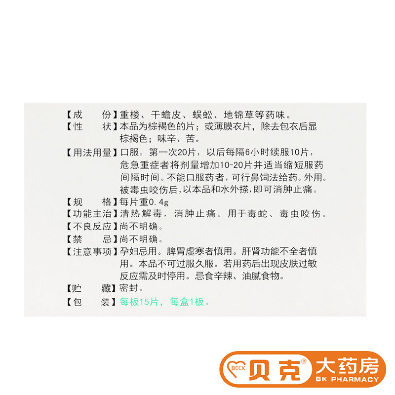 季德胜 Таблетки для змеи Jidesheng 0,4 г*15 таблетки/коробка