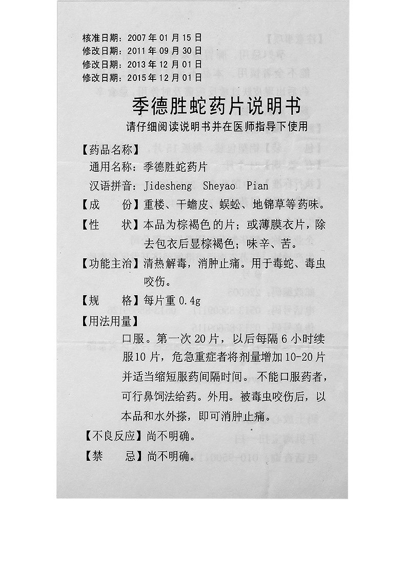 季德胜 Таблетки змеи 0,4 г*15 таблеток/ящик кожи зуд и тепло, укусы комаров, отеки, анальгетик, отравление, детоксикация покраснения, отеки, флагманский магазин с ядовитым магазином Официальный флагманский флагманский магазин