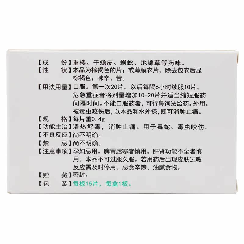 Эффективный период до 21 августа] Джамсон Джиде Шэн Снейк Снейк Таблетки 0,4 г*15 Таблетки/коробка ясная тепловая детоксикация, набухание, облегчение боли, ядовитое, ядовитое, укушные кома