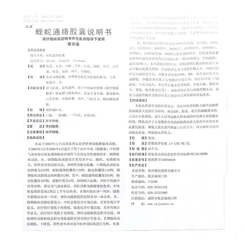 Бесплатная доставка] Jiuzheng Qizhong Snake Tongluo Капсулы 0,5 г*24 капсулы/коробка от инсульта.