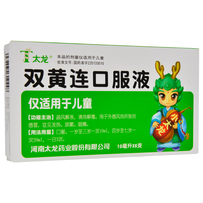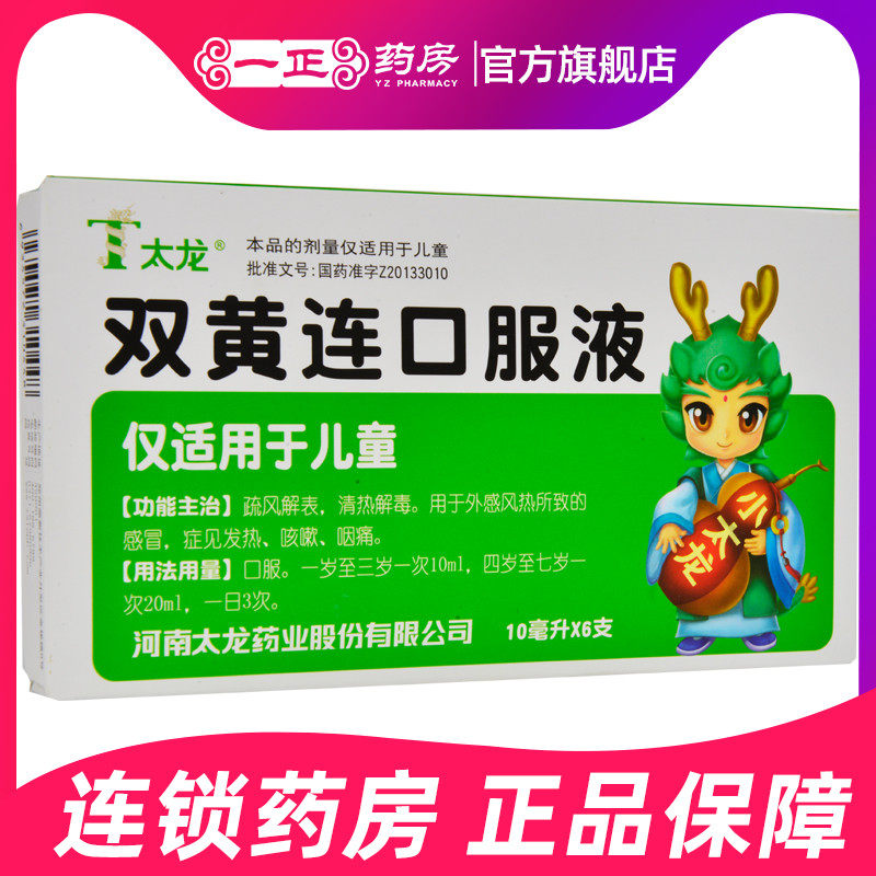 太龙 Жидкость для перорального применения Shuanghuanglian 10 мл * 6 бутылок в коробке Tailong Жидкость для перорального применения Shuanghuanglian 10 мл * 6 бутылок в коробке Детское средство для очищения и детоксикации жара, простуды, лихорадки, кашля и боли в горле
