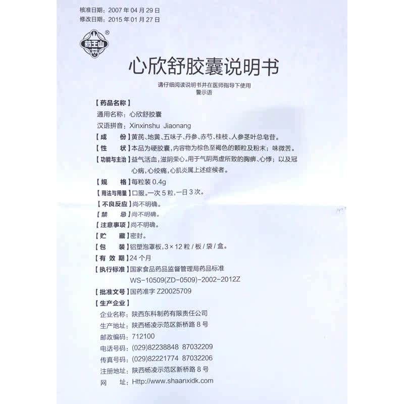 药王山 Капсула Синсин Шу 0,4G*36 Капсулы/коробка подлинный крупный флагманский магазин аптеки
