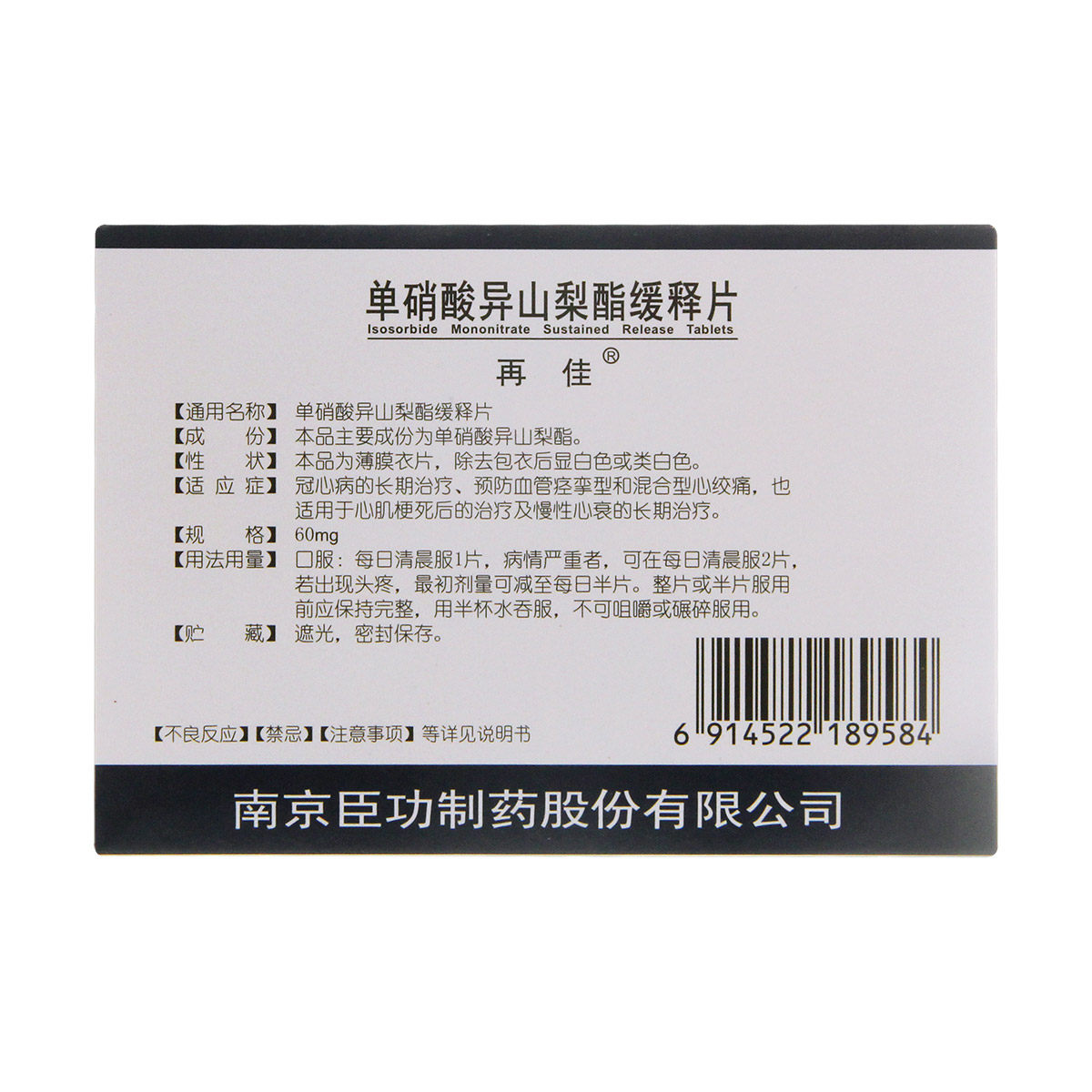 再佳 Одиночная нитратная жемчужина Большинство -Release Tablet 60 мг*10 таблетки/коробка