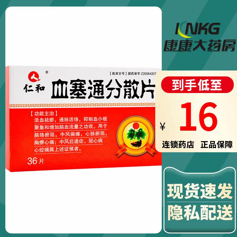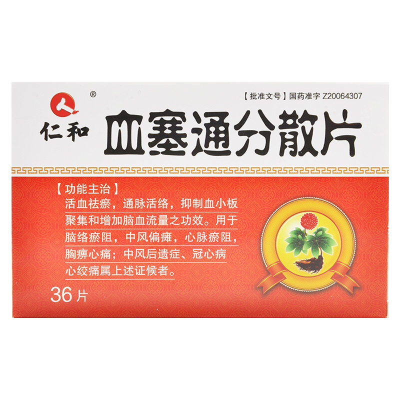 仁和 XueSitong Дисперсные таблетки 0,17 г*36 Таблетки/коробка для кровообращения, удаления крови, кровообращения, дефицита подачи мозга, инсульта, коронарной болезни сердца, стенокардией, таблеток крови SE Tong