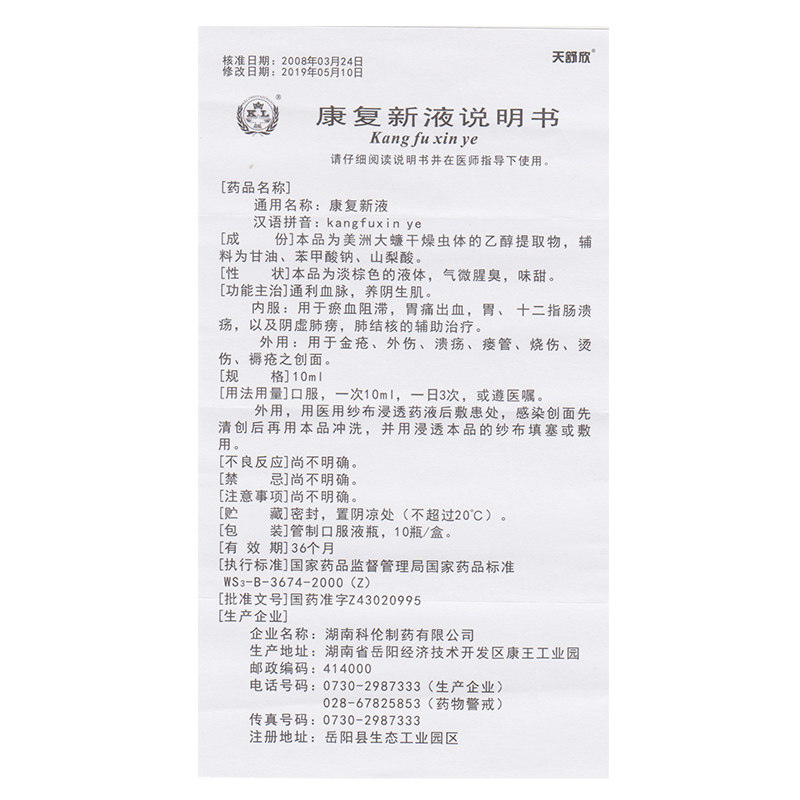 天舒欣 Реабилитация Новый раствор 10 мл*10 бутылок/ячейка язвы желудка геморрагический туберкулез