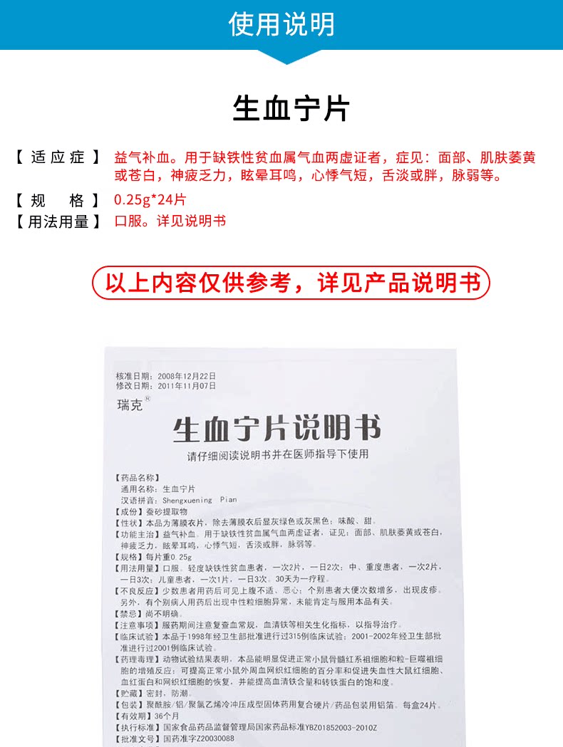瑞克 Кровь -съемные таблетки 0,25 г*24 таблетки полезные циги и дефицит крови анемия Qi и дефицит дефицита крови пожелтевой кожей.