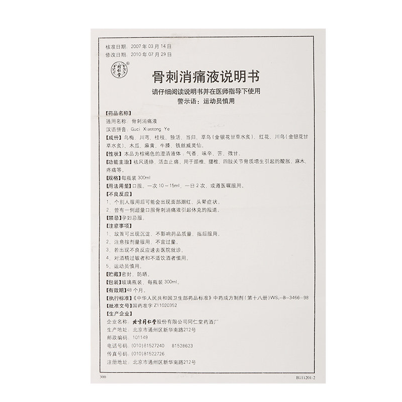 同仁堂 Исчезновение костей шпоры 300 мл*1 бутылка/ящик с циддом из трендуо гематематики гематематополи