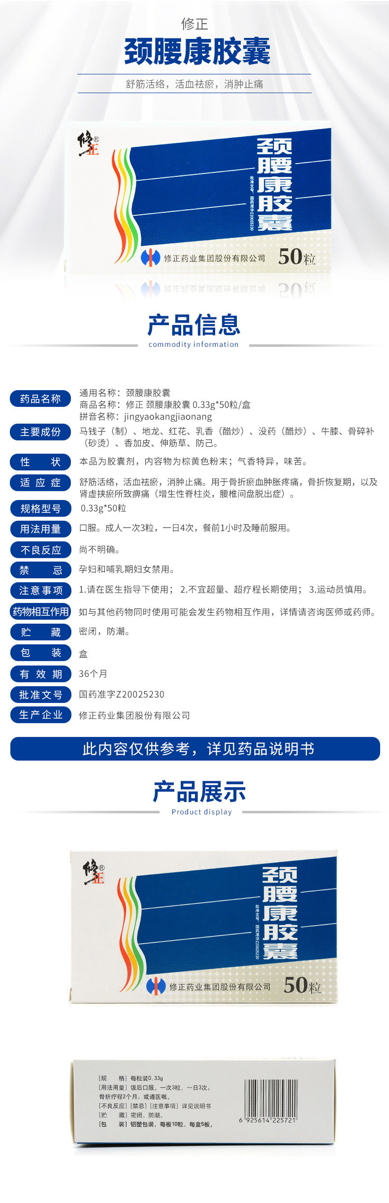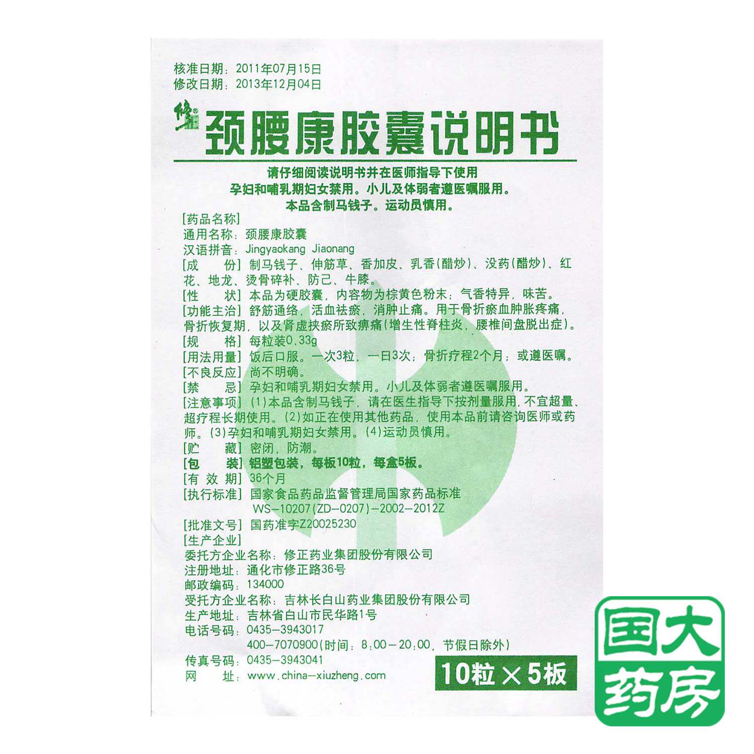 修正 Капсула шеи и талии 0,33G*50 Капсулы/коробка Шу Цзин активировал кровообращение, заставление крови, боль, облегчение боли, облегчение боли, дефицит почек и отека кровь, кровь, перелом гематомы [Флагманский магазин Национального университета]]
