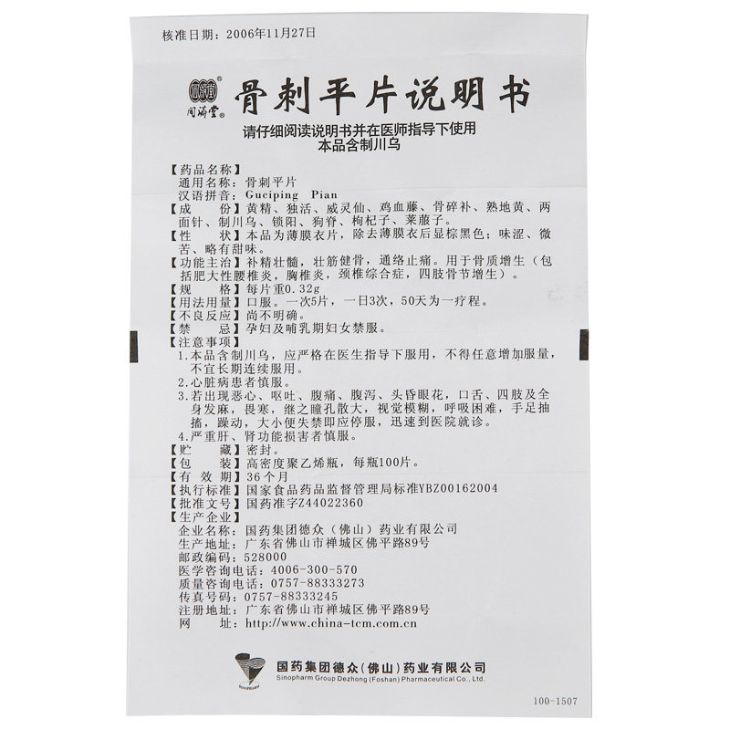 БЕСПЛАТНАЯ ДОСТАВКА] Тонгджи Танг Китайский лекарственный материал Медицинский материал костяные шпоры плоские таблетки 0,32 г*100 таблетки/ящик для кости гиперплазия и костяные шпоры поясничный позвонок