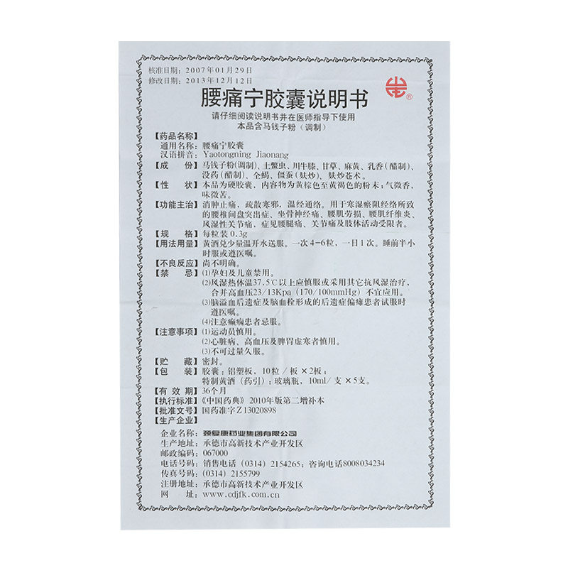 颈复康 Поясничная болезненная капсула 0,3 г*20 капсулы/коробка поясничная мышца штамм боли в поясничный шейный спондилоз