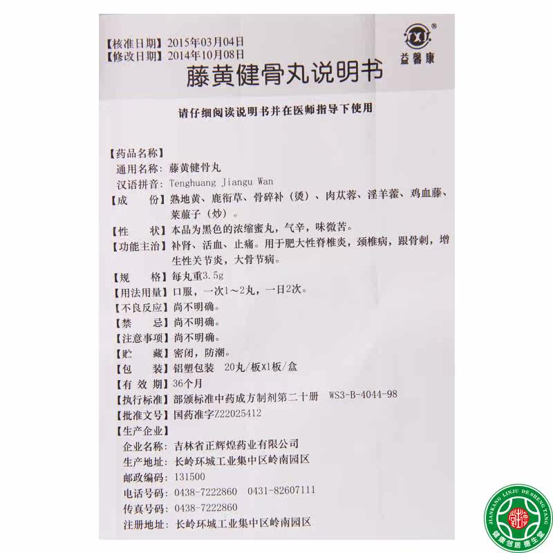 YXK/益馨康 Tenghuang jianzhi pill 3,5 г*20 таблетки/пополнение циркуляции крови почек и облегчения боли, гиперпита, гипертилина крови почечной крови, гипертрофического заболевания позвоночника, спондилоза шейки матки