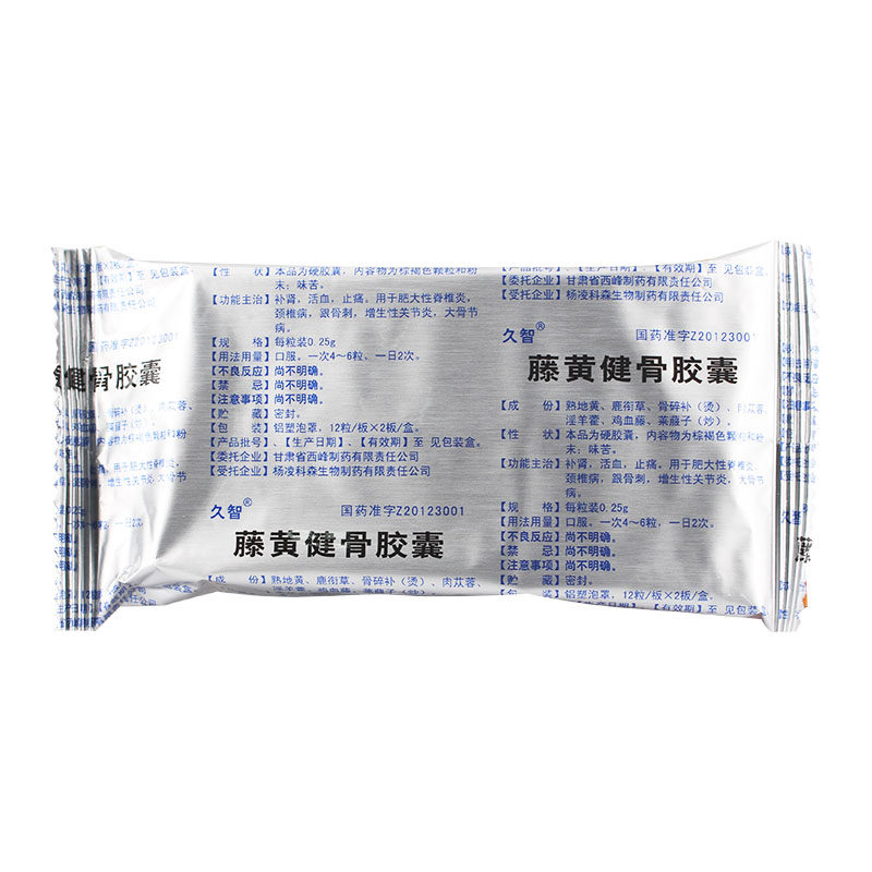 久智 Teng Huangjian Bone Capsules 0,25 г*12S*2 Пластина/коробка Тоническая кровообращение почечной крови и облегчение боли, используемые для гипертрофического спондилита шейного спондилоза, гиперплазия кости шпоры