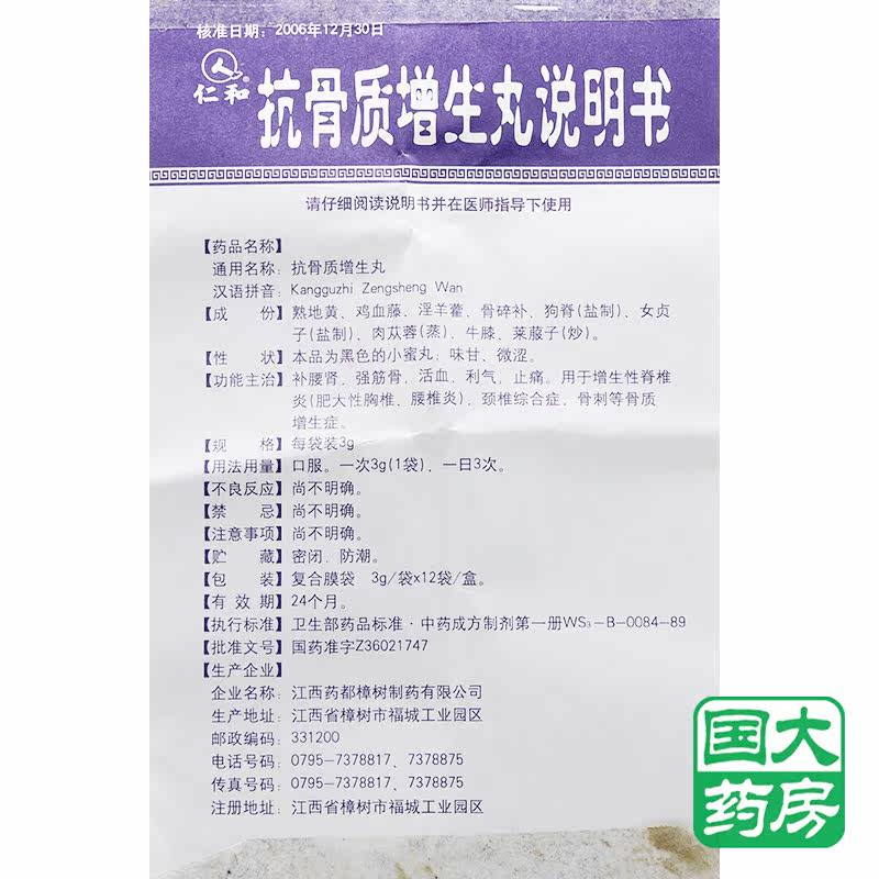 仁和 Anti -bone Hyperplasia 3G*12 Bag/Box [Флагманский магазин Национального университета]]