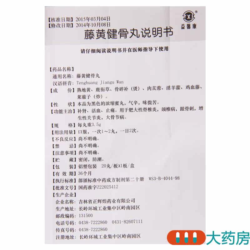 YXK/益馨康 Tenghuang jianzhi pill 3,5 г*20 таблетки/коробка репродуктивная кровавая кровообращение гипертрофическое позвоночное шейное спондилоз шейный шейный спондилоз
