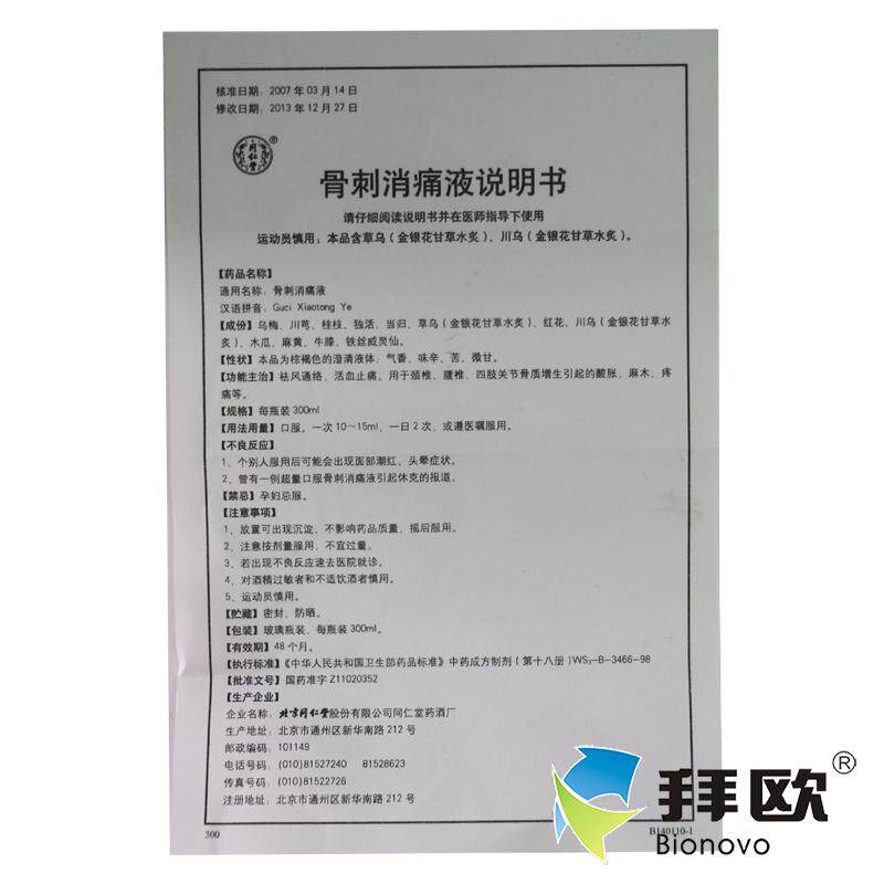 同仁堂 Учистка кости шпоры 300 мл*1 бутылка/коробка фармацевтического магазина Флагманский магазин Официальный флагман
