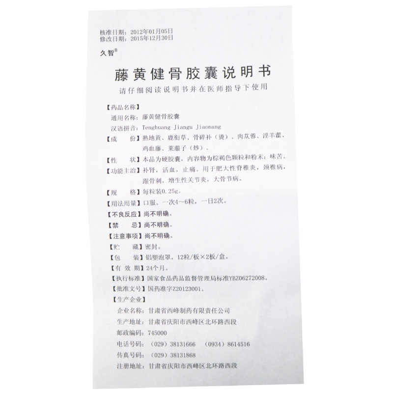 久智 Teng Huangjian Bone Capsule 0,25G*12S*2 плата/коробка