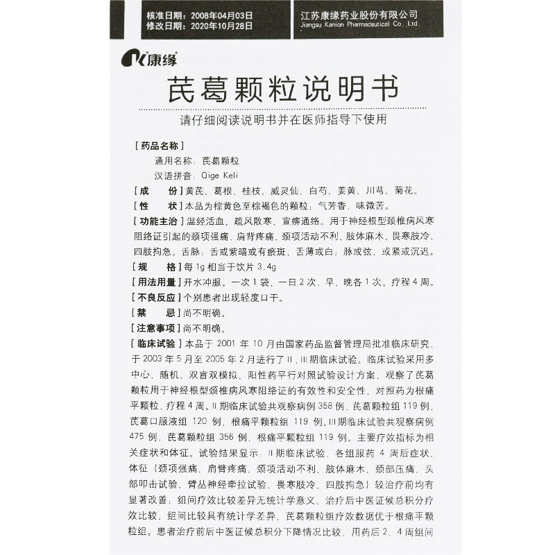 Консультация составляет всего 59] Кан Юанки Ге Гералы 10G*10 мешков/температура коробки меридиан крови крови и сухожили