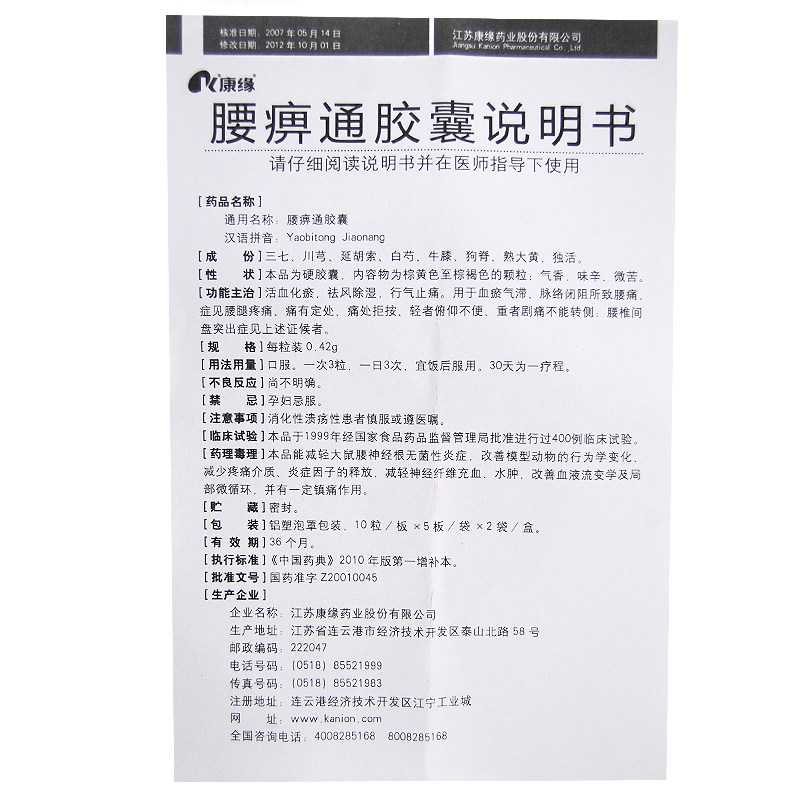 康缘 Капсулы поясничного паралича 0,42 г*50 капсулы/коробку промо -застоя в крови, удаление ветра, осушиление и избавление нелегальных анальгетиков, используемых для застой к крови QI вены, поясничной боли, поясничной боли и боли в ногах, отказания на поясничный межветальный диск, провинции, провинции, поясничные продукты, отказа