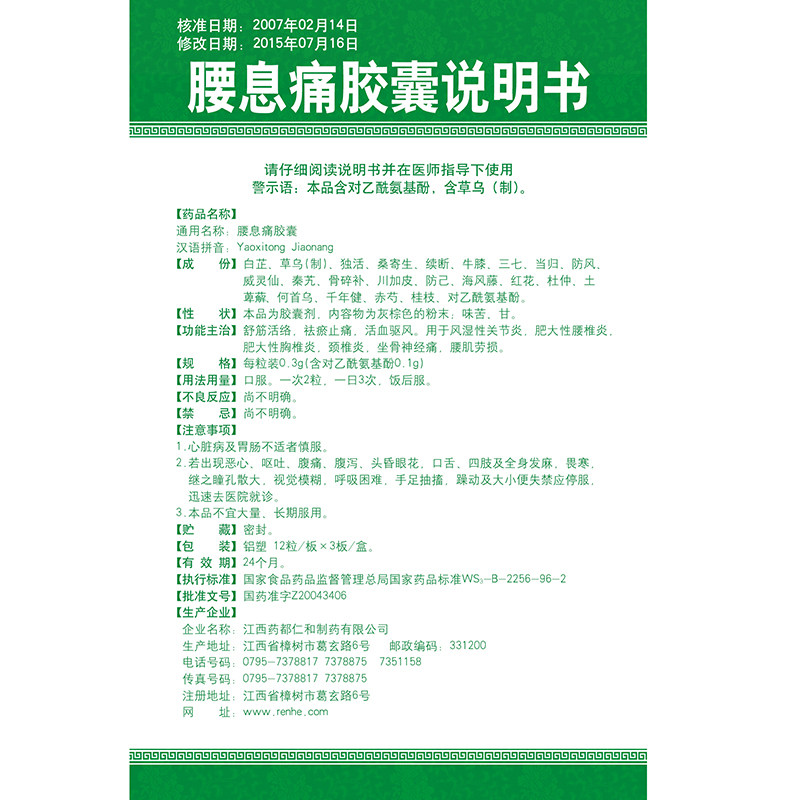 Официальная подлинная защита] Renhe Lumbo Pacific Capsules 0,3 г*36 капсулы/коробка Shujin против базовой боли, акитиционирование анти -кулинарной Вермы Ципическое ишиа.