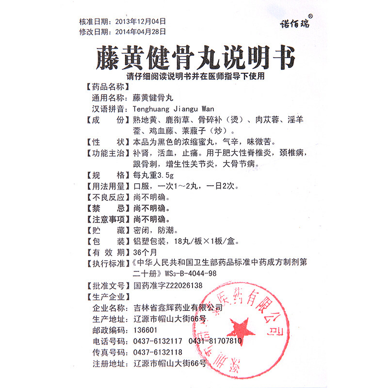 诺佰瑞 Tenghuang jianu Pill 3,5 г*18 таблетки/коробка Da тоник кровообращение почек и обезболивание подходит для гипертрофического спондилита шейного спондилоза и гиперпластический артрит костей