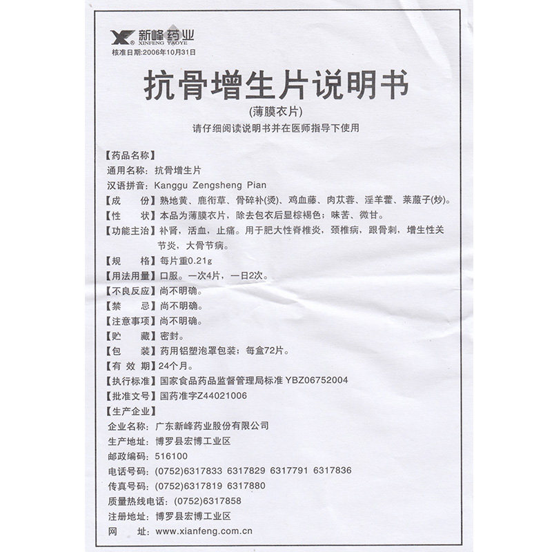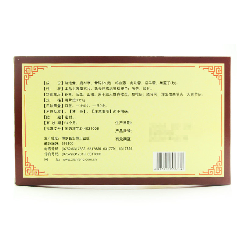 Синфенг против гиперплазии таблетки с гиперплазией 0,21 г*72 таблетки/коробка Дополнительный почечный спондилит костный запасной артрит Большой костный фестиваль заболевание