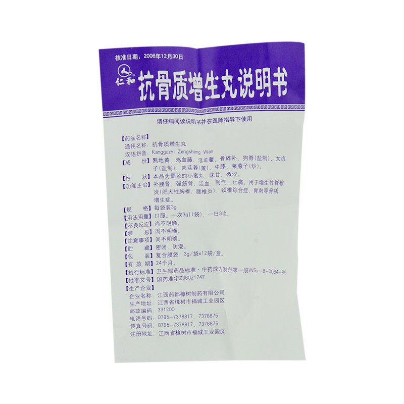 仁和 Анти -салона гиперплазия таблетки 3G*12 пакетов/ящик для добавки почек и сильной кости, кровообращения кости, ци, анальгетической гиперплазии шейного шейного синдрома и костей и других остеоплазматической гиперплазии