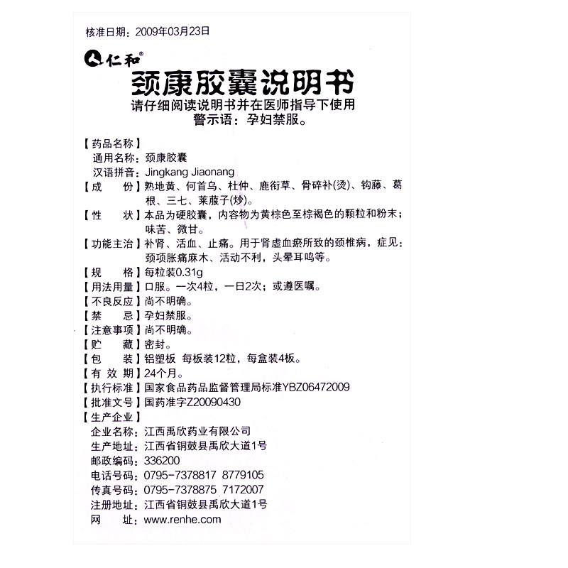 仁和 Кабельная капсула канга 0,31 г*48 капсулы/коробка [YP], питающиеся почки, активирующие кровь, головокружение, шум в ушах, спондилоз шейки матки, активность боли онемения