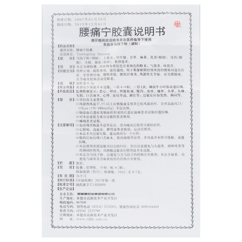 山庄 Поясничная больная капсула 0,3 г*20 капсулы/коробка