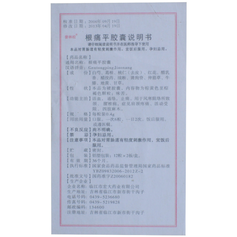 普林松 Капсула боли в корне 0,4 г*24 капсулы/коробка*3 коробки кровообращения, кровообращения, обезболивающих, поясничного спондилоза