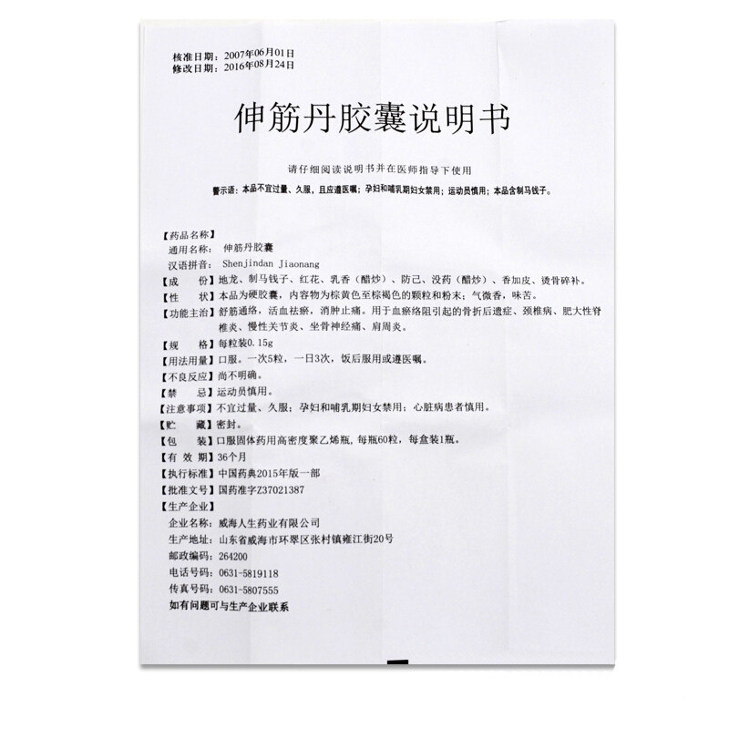 人生 Капсула Dan Dan Dan 0,15 г*60 капсулы/коробка релаксации, отек и боли, гипертрофический спинарит, хронический артрит, периартрит плеча